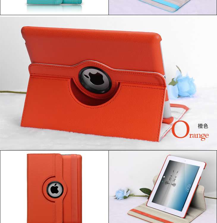 360° Rotating Stand, Orange PU Leather Case for iPad2,ipad3,ipad