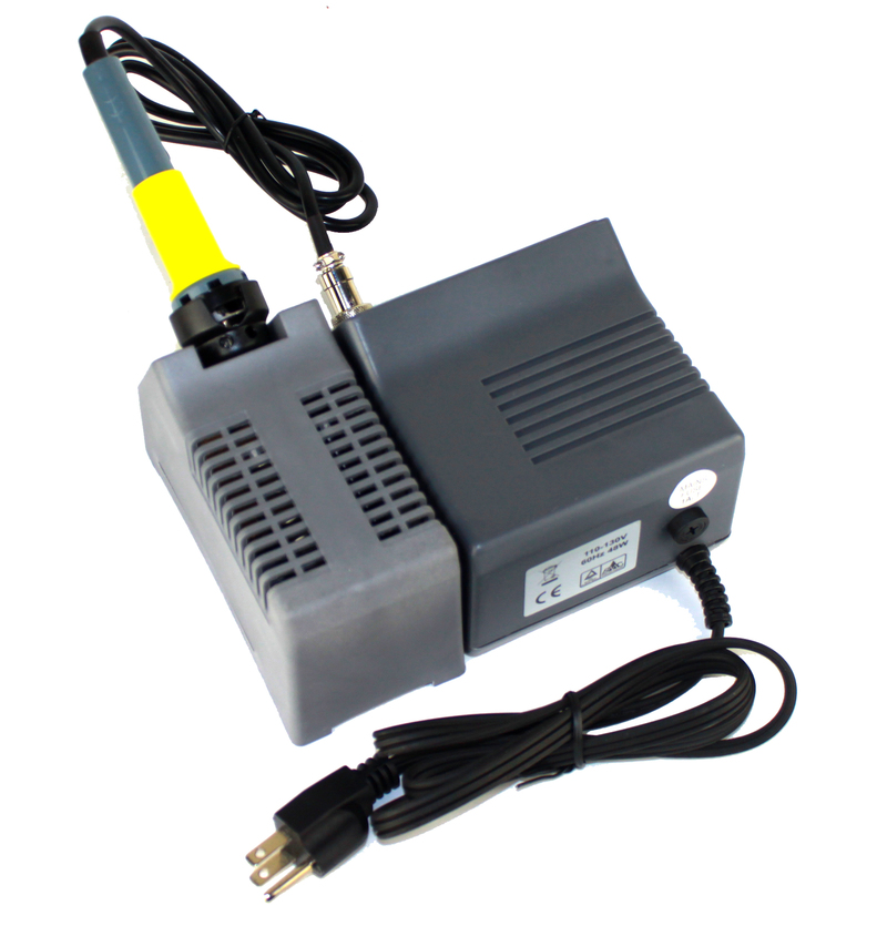 Many different soldering tasks are accomplished easily by using the adjustable 5 to 40 watt (150°C to 450°C temperature) adjustment. The lightweight pencil iron features a fatigue-reducing rubber grip, and a Bakelite-ringed holder keeps the iron at the ready. A field replaceable, precision ground, iron-plated solid copper tip provides maximum heat transfer, minimizing cold solder joints. Includes 1.5mm conical soldering tip and cleaning sponge. Additional tips available for a variety of soldering applications.