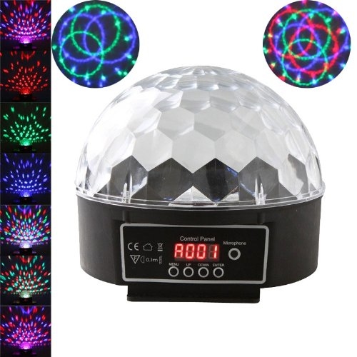 This LED magic ball can absolutely shock your eyeball with colorful lighting. It contain six of 3w red, green ,blue, orange, white LED lamp bead which control rotation speed, colors and strobe through three modes including DMX512 control, Voice-activated, automatic control.