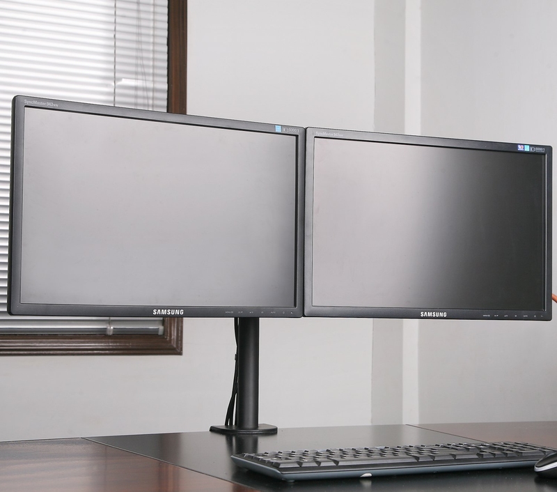 Dual arm monitor mount allows you to clear out your desk space, while providing ergonomic monitor installation height. Economical and dependable, mechanical monitor arms allow several height options for placing your monitor in the best ergonomic position, while offering more desktop space.