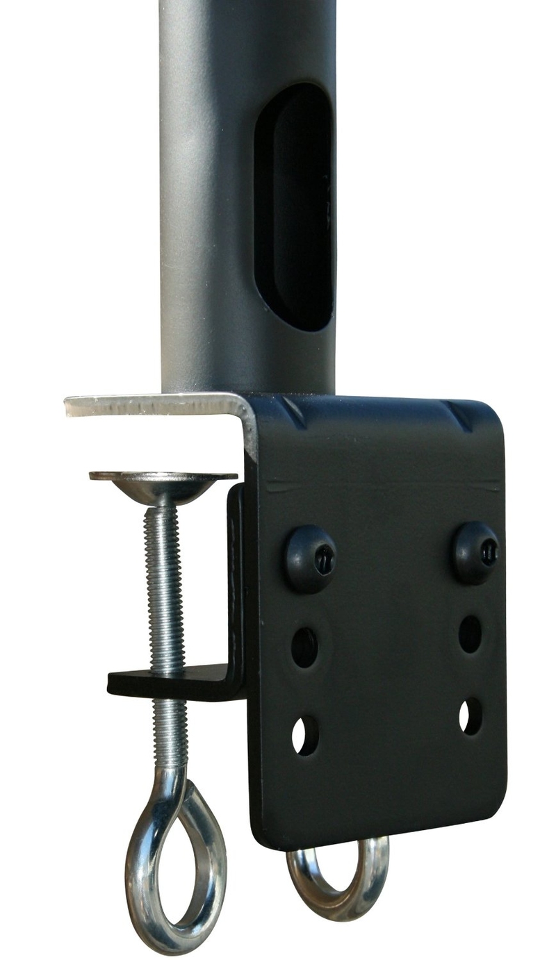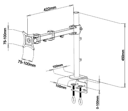 The heavy duty dual C clamps secure the mount firmly to the edge of the desk. No drilling required. The arm that supports the monitor can be adjusted on the vertical tube for the best height adjustment.