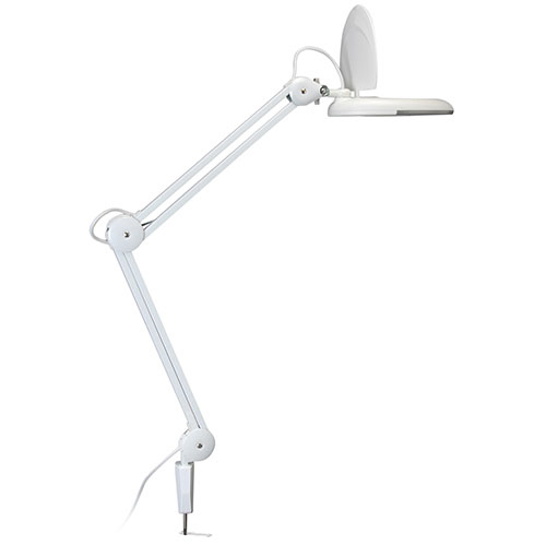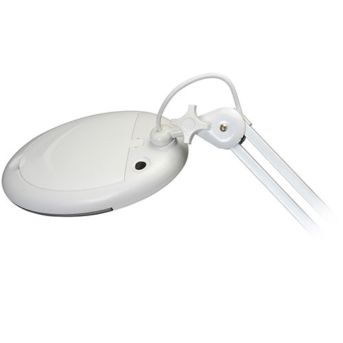 This desktop LED magnifier work lamp uses 56 high-output, low power consumption LEDs to illuminate whatever you are working on. The 5" magnifying lens lets you see a level of detail that would be impossible or strain-inducing for the eye alone. The special desktop/bench mount allows for multiple mounting options depending on your preferred work space. The arm height is adjustable up to 34" and attaches to your working surface using a 2-3/4" C-clamp.