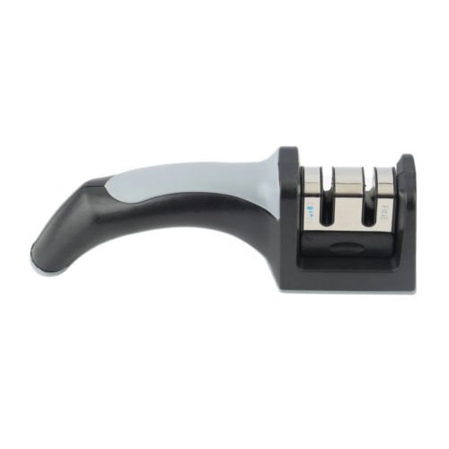 Preserve the Sharpness and Lifetime of Your Blades The Stanz (TM) Knife Sharpener is equipped with two levels of edge sharpening, coarse and fine.The sharpener meets a high range of blade upkeep needs for kitchen, hunting, and fishing use. Built to use. Built to last The anti skid tabletop design allows easy handle and stability to ensure the highest safety and simplicity for each use. The Stanz Knife Sharpener is easy to clean and store, this blade sharpener offers long lasting dependability.The high grade hard alloy and high speed steel build ensure quality every time. The perfect companion for any blade, the knife sharpener is the ideal assistant for any fine blade owner. Features Specifications Ideal for a high range of kitchen, fishing and hunting knives Quick and easy sharpening Coarse and fine sharpening channels Anti-slip tabletop design Stable handle for safe sharpening High speed steel build ABS engineering material High grade hard alloy sharpening surface Engineered for optimal sharpening angling Note: Do not use the knife sharpener to sharpen serrated blades or scissors and do not put the sharpener in the dishwasher or submerge in water. Package contents 1x Stanz Knife Sharpener